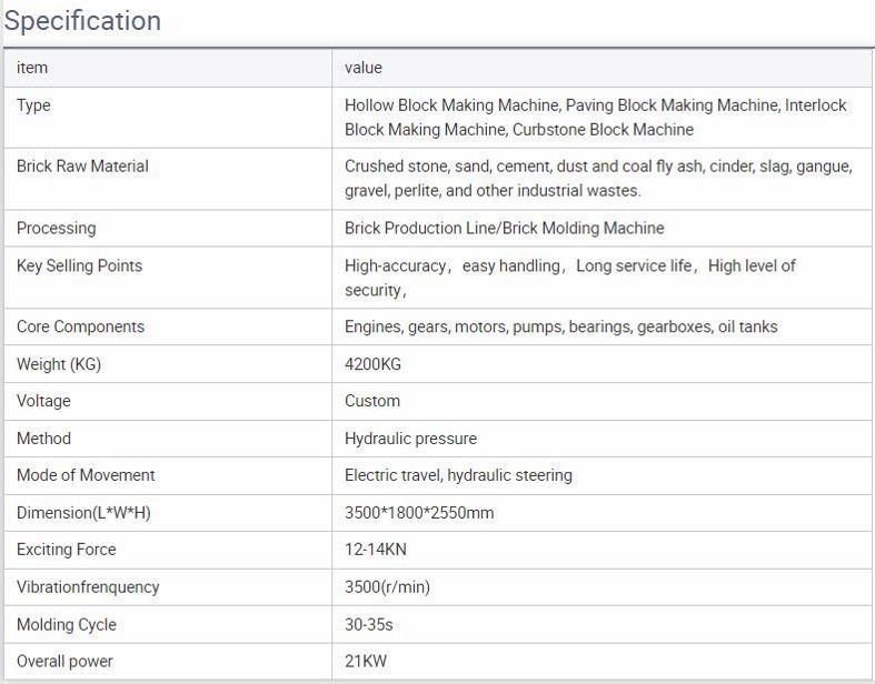 Species: Paving Block Making Machine, Interlock Block Making Machine, Curbstone Block Machine, Hollow Block Making Machine